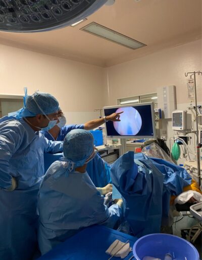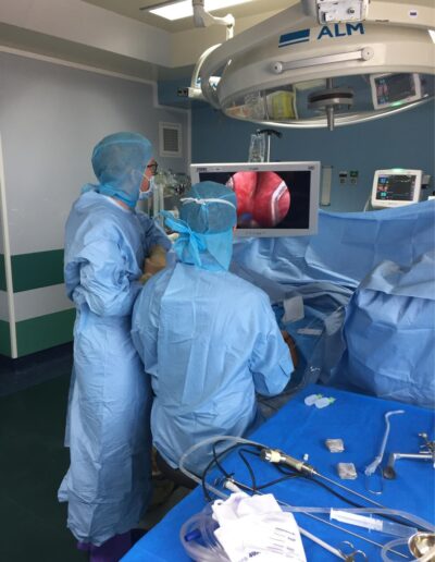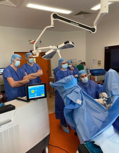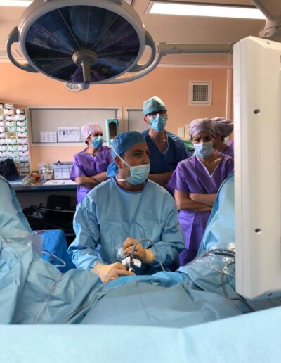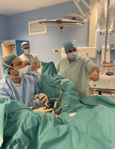 - Le traitement des prolapsus de la femme (cystocèle et rectocèle) par chirurgie robot-assistée ainsi que le traitement de l’incontinence urinaire féminine.